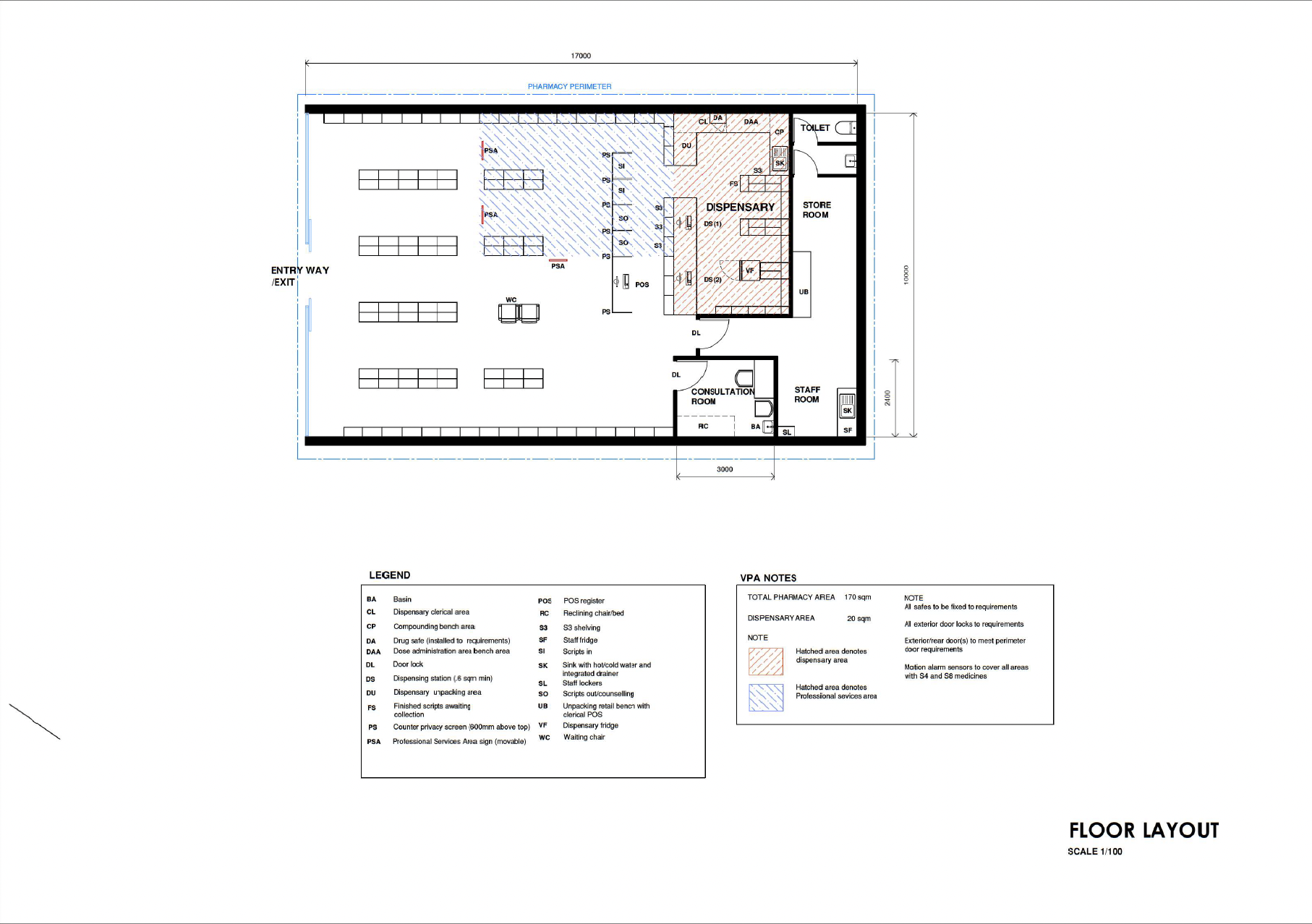 To assist the VPA to determine whether premises should be registered, applicants for registration of premises are required to provide a copy of a pharmacy floor plan that demonstrates that the applicable regulatory requirements have been satisfied.